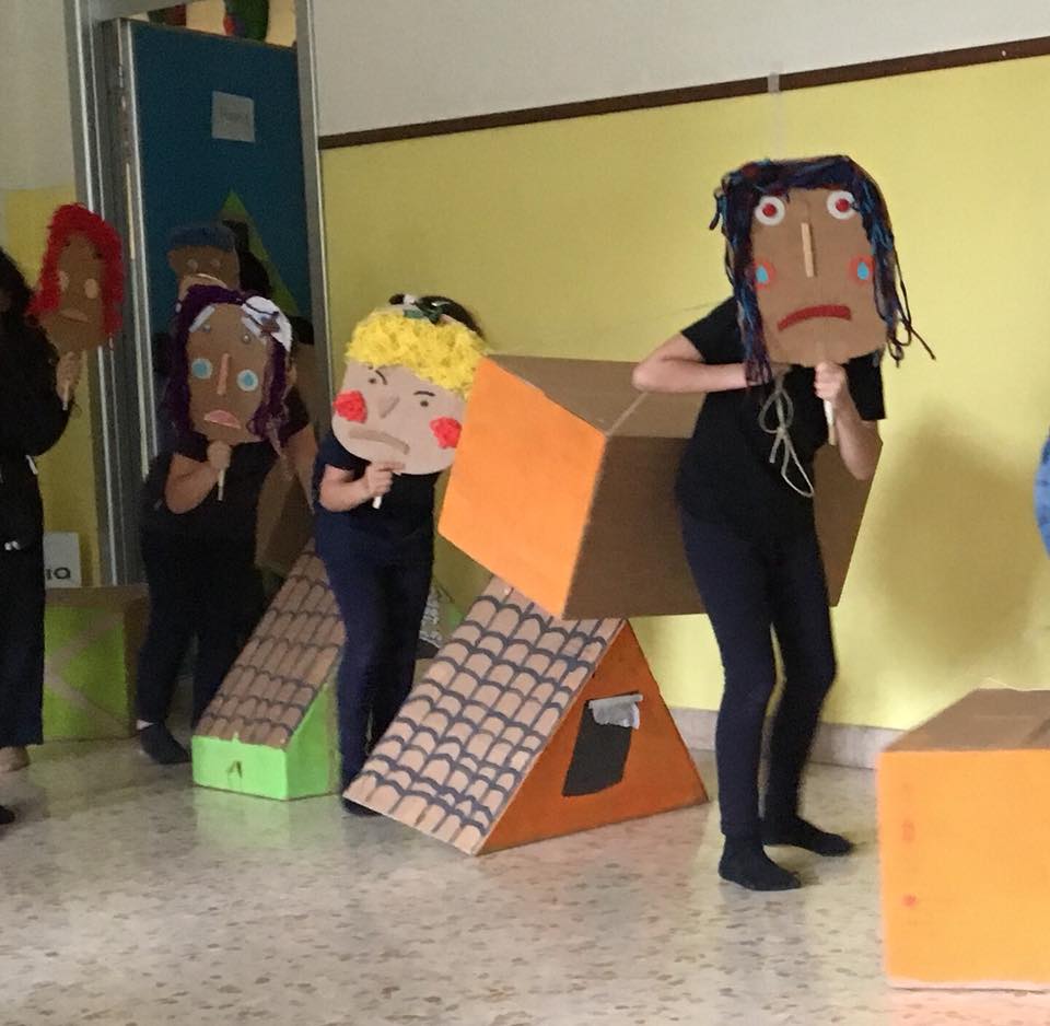 Costruiamo maschere tematiche, autobiografiche o per lo spettacolo, pupazzi realizzati con materiali di scarto. Si possono costruire oggetti autobiografici o paesaggi tattili, giochi da tavolo o in grande formato.
