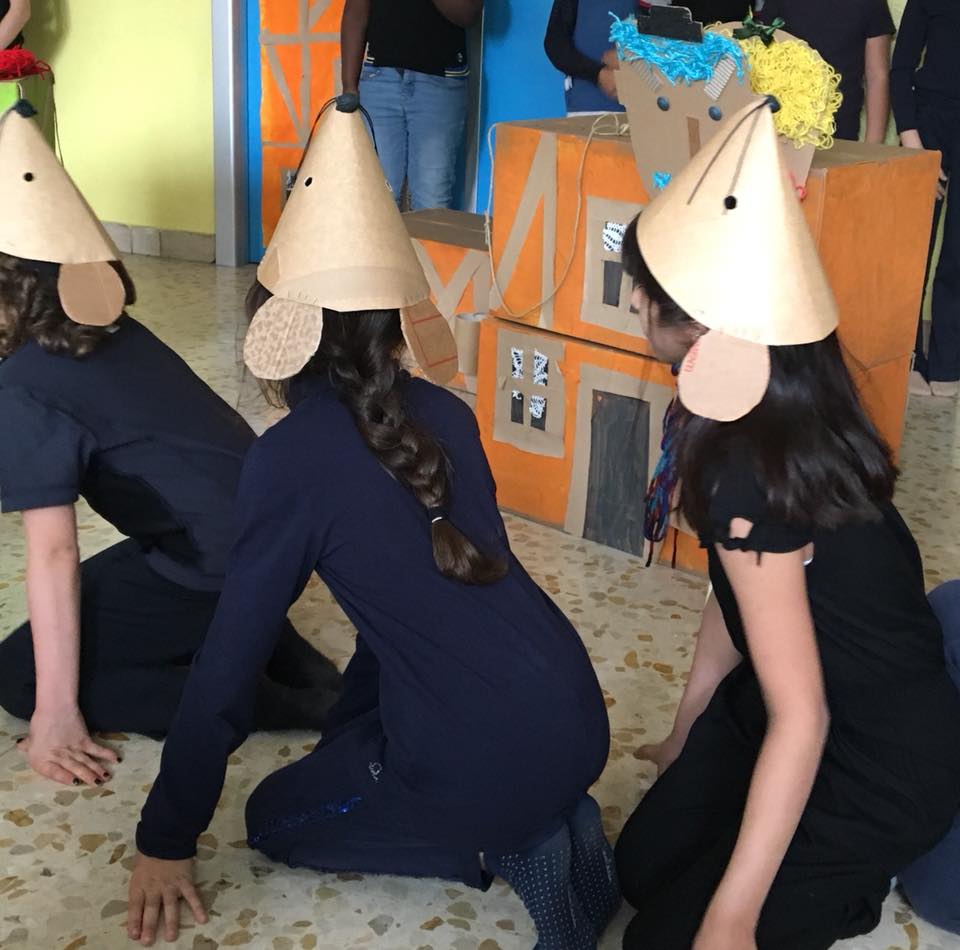 - A.S. 2017/2018 – Scuola primaria Mons. Chiot di Verona, classe III B – Progetto “I CARE -Disegnare il futuro” (durata 20 ore). Progettazione e realizzazione di un laboratorio artistico in orario extracurricolare. LUOGHI E FACCE AD HAMELIN: scenografie, maschere ed elaborati grafici finalizzati allo spettacolo teatrale “Hamelin, la città della musica”, attraverso l’utilizzo di materiali di scarto, la sperimentazione di diverse tecniche pittoriche, la costruzione di timbri e l’utilizzo delle textures, la progettazione grafica. Sono state progettate e realizzate le maschere degli abitanti di Hamelin e dei topi, sono state costruite le case scomponibili della città di Hamelin, e gli inviti per lo spettacolo.