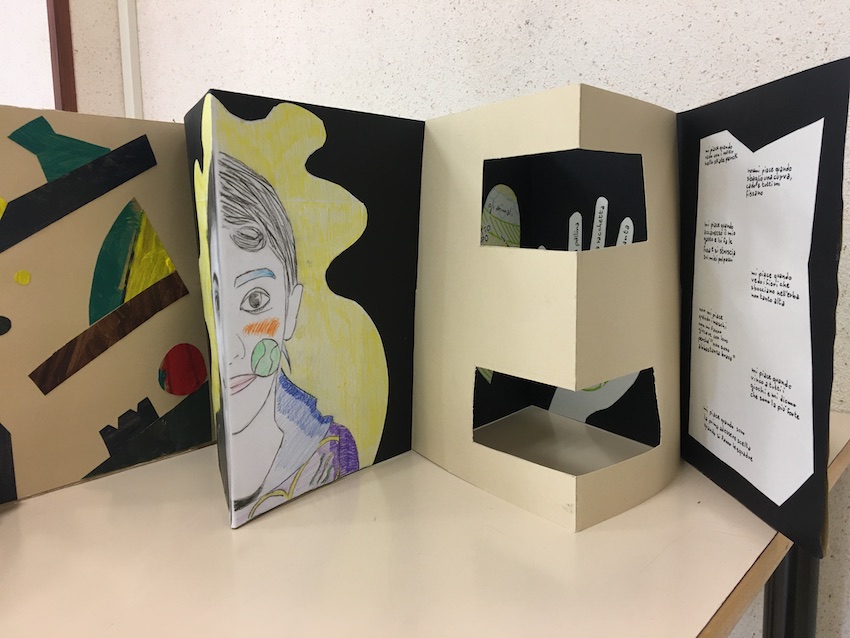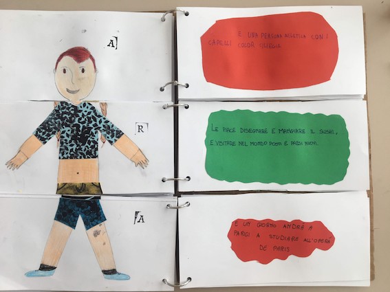 - marzo-maggio 2019 – “LIBRO D’ARTISTA” Progettazione e realizzazione di un laboratorio artistico in orario curricolare. IL LIBRO DEI MESTIERI (classi terze) e IL LIBRO DI NOI (classi quarte). Creazione di una storia e di una serie di immagini (fumetto/illustrazione) per la composizione di un libro collettivo. Ogni bambino nello specifico ha realizzato una pagina composta da una frase della storia e un’illustrazione. Le pagine del libro sono divise in parti e possono essere mescolate per cambiare storia ogni volta che si sfoglia il libro. In questo modo le pagine mobili permettono l’interazione dei bambini o dei mestieri tra di loro, lo scambio tra le loro storie, gli uni con gli altri. (Scuola primaria ANNA FRANK Povegliano, classi terze e quarte)