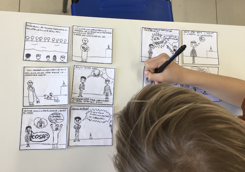 - A.S. 2019/2020 e 2020/2021 – Scuola primaria Mons. Chiot di Verona, classe V B – Progetto “I CARE -Disegnare il futuro”. Progettazione e realizzazione di un laboratorio artistico in orario curricolare: STORIE A FUMETTI. Progettazione e realizzazione di storie a fumetti. Definizione delle storie personali, realizzazione degli storyboard, studio dei personaggi, realizzazione delle tavole definitive del fumetto. I laboratori si sono inseriti nelle UDA di geografia (le regioni d’Italia) e italiano-educazione civica (le regole per vivere in comunità).