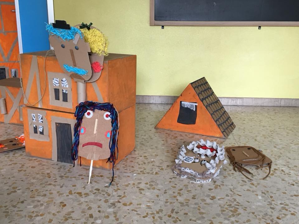 - A.S. 2017/2018 – Scuola primaria Mons. Chiot di Verona, classe III B – Progetto “I CARE -Disegnare il futuro” (durata 20 ore). Progettazione e realizzazione di un laboratorio artistico in orario extracurricolare. LUOGHI E FACCE AD HAMELIN: scenografie, maschere ed elaborati grafici finalizzati allo spettacolo teatrale “Hamelin, la città della musica”, attraverso l’utilizzo di materiali di scarto, la sperimentazione di diverse tecniche pittoriche, la costruzione di timbri e l’utilizzo delle textures, la progettazione grafica. Sono state progettate e realizzate le maschere degli abitanti di Hamelin e dei topi, sono state costruite le case scomponibili della città di Hamelin, e gli inviti per lo spettacolo.