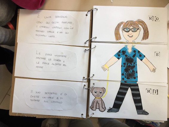- marzo-maggio 2019 – “LIBRO D’ARTISTA” Progettazione e realizzazione di un laboratorio artistico in orario curricolare. IL LIBRO DEI MESTIERI (classi terze) e IL LIBRO DI NOI (classi quarte). Creazione di una storia e di una serie di immagini (fumetto/illustrazione) per la composizione di un libro collettivo. Ogni bambino nello specifico ha realizzato una pagina composta da una frase della storia e un’illustrazione. Le pagine del libro sono divise in parti e possono essere mescolate per cambiare storia ogni volta che si sfoglia il libro. In questo modo le pagine mobili permettono l’interazione dei bambini o dei mestieri tra di loro, lo scambio tra le loro storie, gli uni con gli altri. (Scuola primaria ANNA FRANK Povegliano, classi terze e quarte)