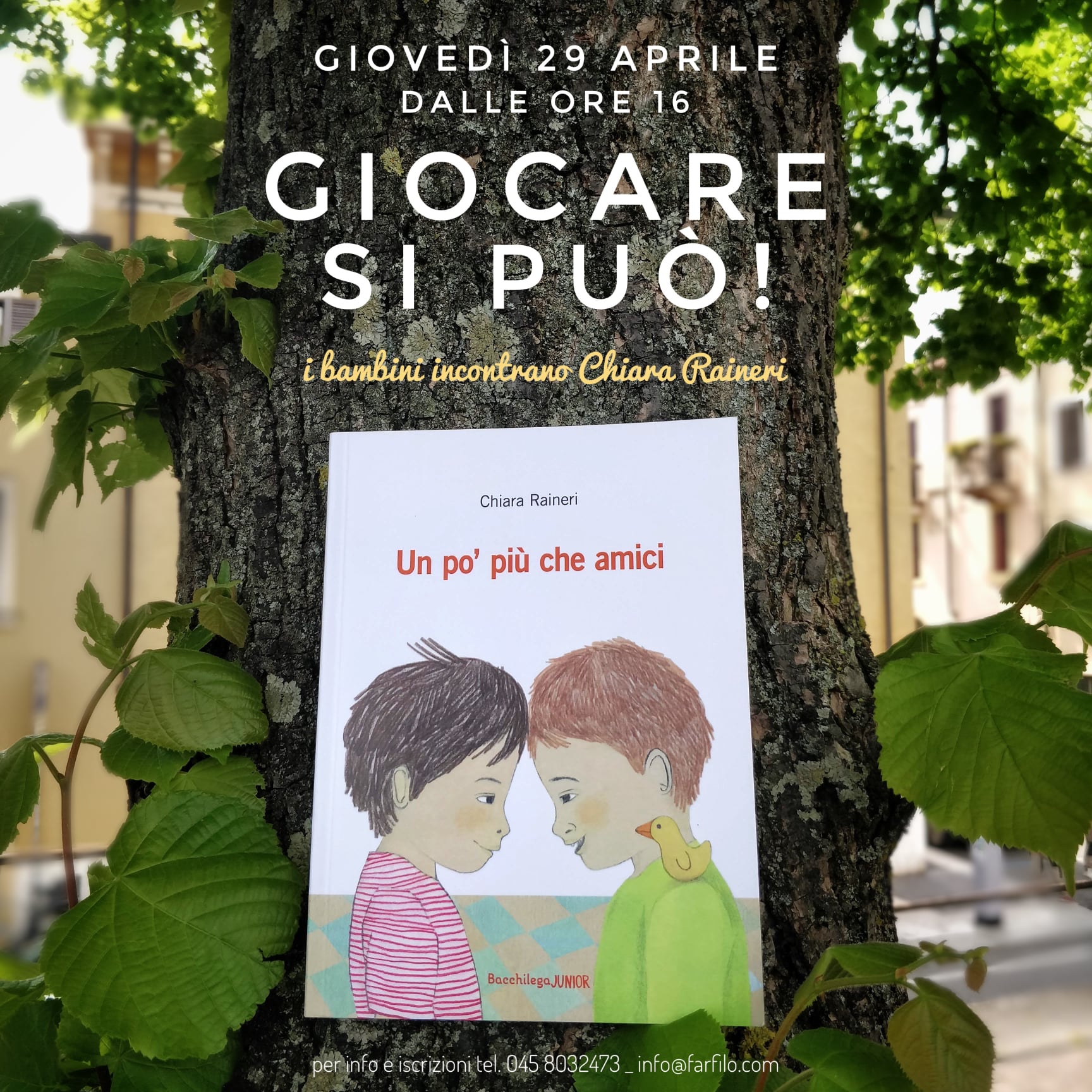GIOCARE SI PUO’! Ecco la notizia meravigliosa di oggi! Vi aspetto da Farfilò per raccontarvi del mio nuovo libro “Un po’ più che amici” e per giocare assieme. E’ tutto pensato perché possiamo incontrarci in modo sicuro e sarà bellissimo così.. già lo so! Segnatevi la data, giovedì 29 aprile dalle 16.00 alle 17.30.
