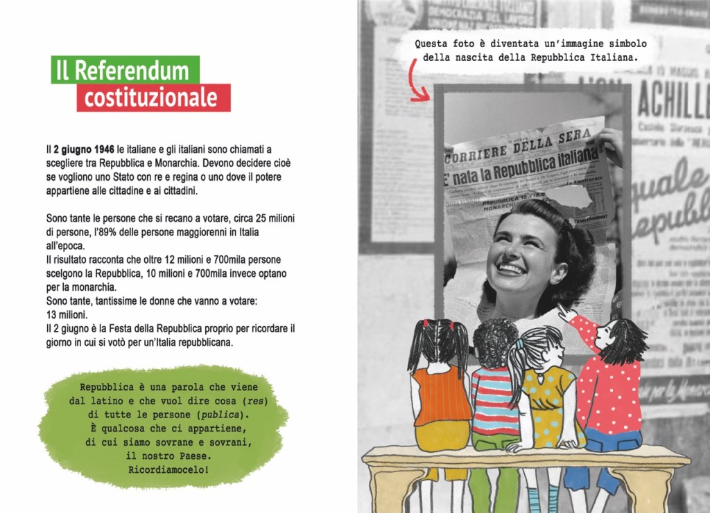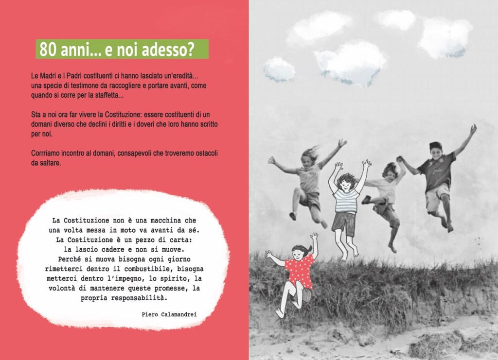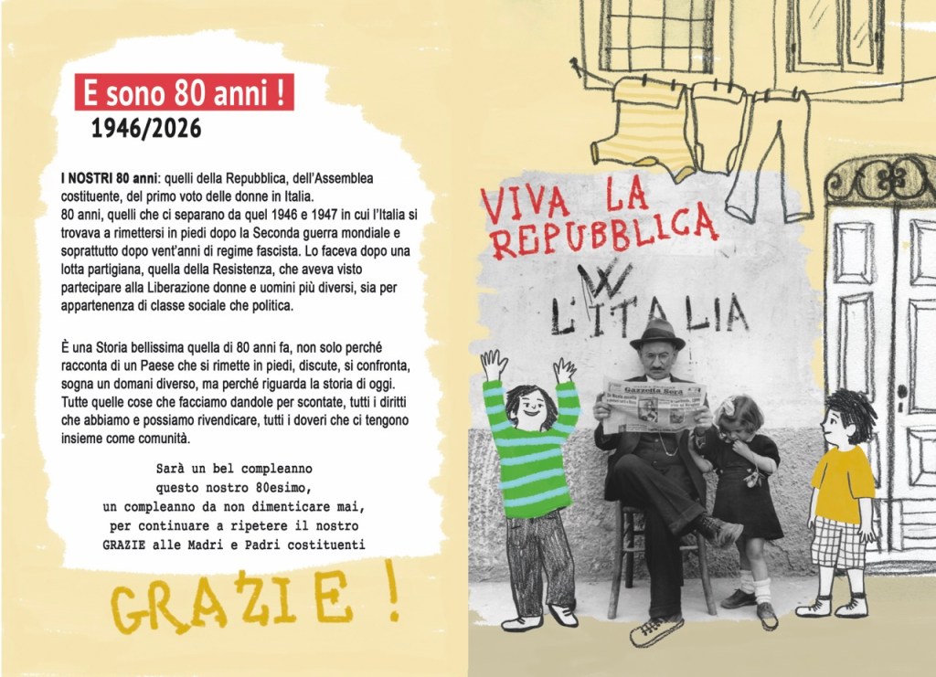 Una faccia che compie 80 anni. Una faccia che vuole festeggiare gli ottant’anni della Costituzione italiana, dell’Assemblea costituente, del voto alle donne.