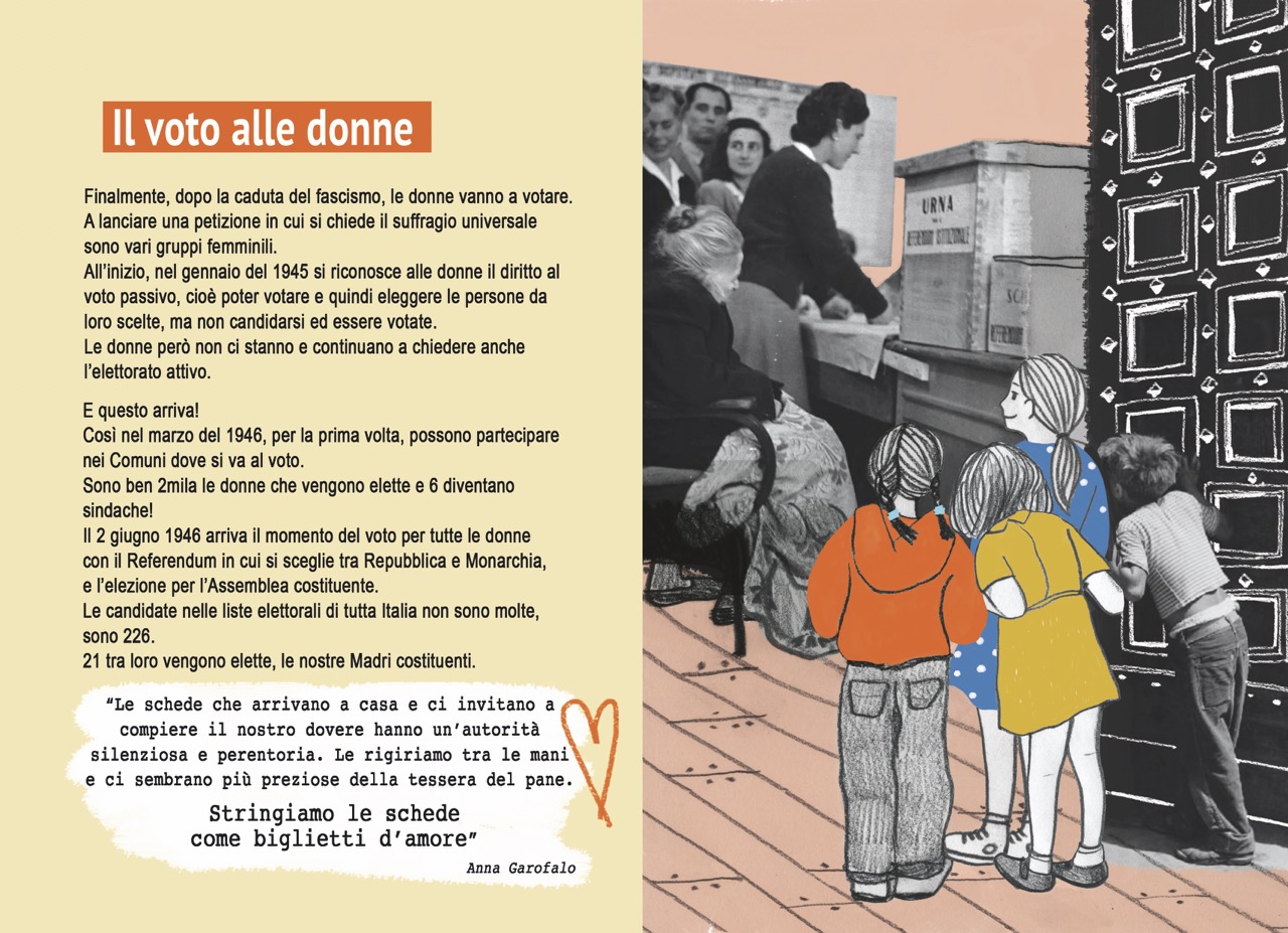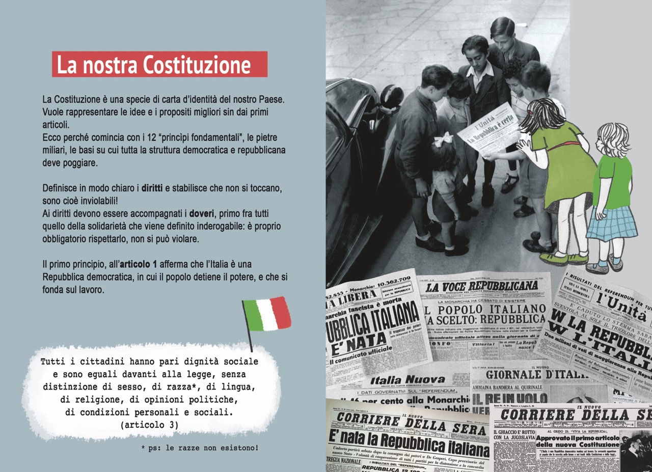 Una faccia che compie 80 anni. Una faccia che vuole festeggiare gli ottant’anni della Costituzione italiana, dell’Assemblea costituente, del voto alle donne.