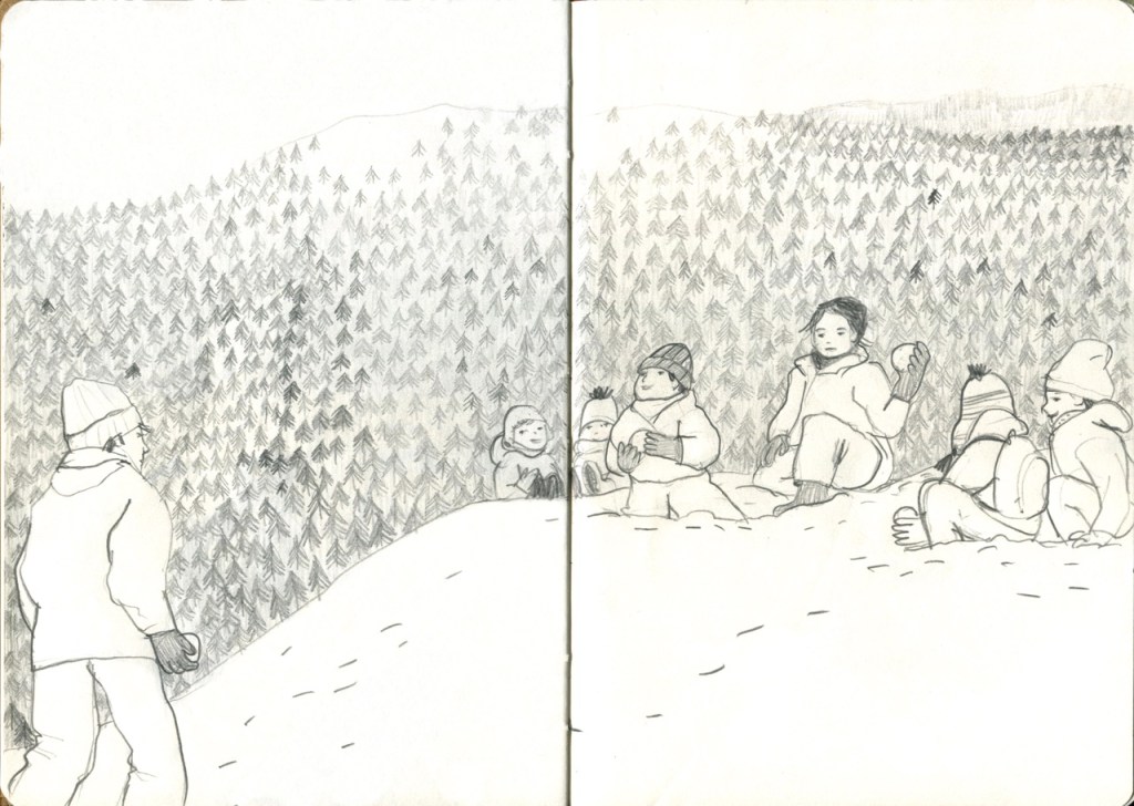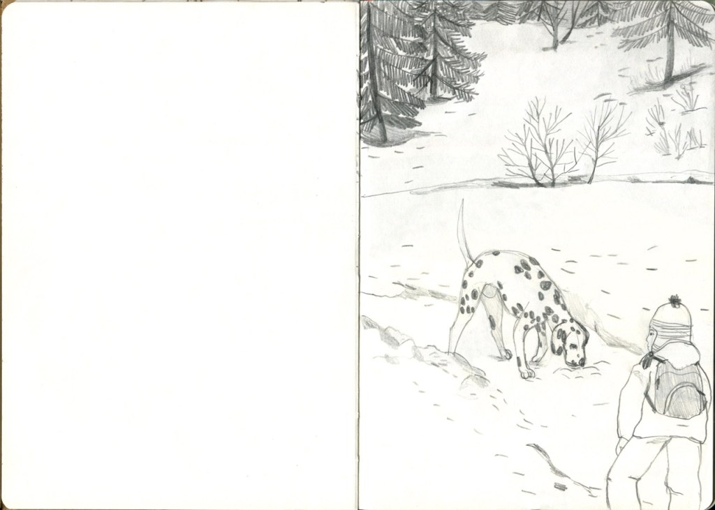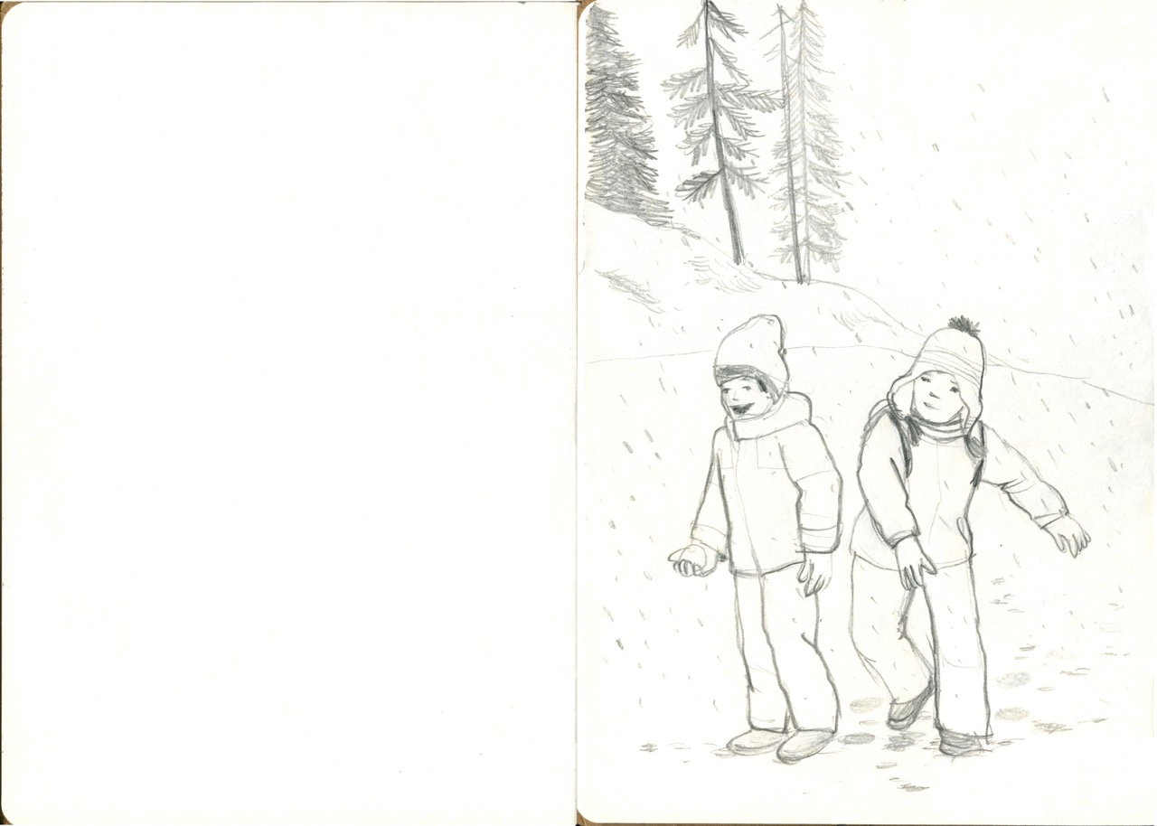 SCHIZZI IN MONTAGNA Quando infine torni a casa ma vuoi portarti via un po’ di quel bianco lì. E decidi che è il bianco del foglio. #schizziinmontagna